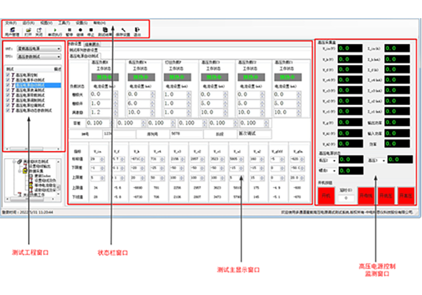 ● 具有高壓電源動態(tài)參數(shù)測試功能,可實現(xiàn)電壓/負載調整率、上下電波形過沖、輸出電壓、電流、功率及效率等參數(shù)測試;