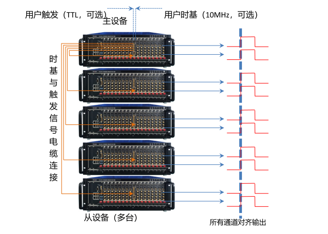 1652AM配備了獨特的高精度同步定時器,其采用新型高精度數(shù)字延遲架構(gòu),同步精度遠(yuǎn)優(yōu)于傳統(tǒng)產(chǎn)品。 任意波模式下:同一模塊內(nèi)四個通道同步精度可達(dá)30ps;不同模塊間、多機箱間通過定時同步器,實現(xiàn)高精度的信號輸出同步,同步精度同樣可達(dá)30ps;每個通道輸出信號的延時獨立可調(diào),調(diào)節(jié)步進(jìn)1ps級。