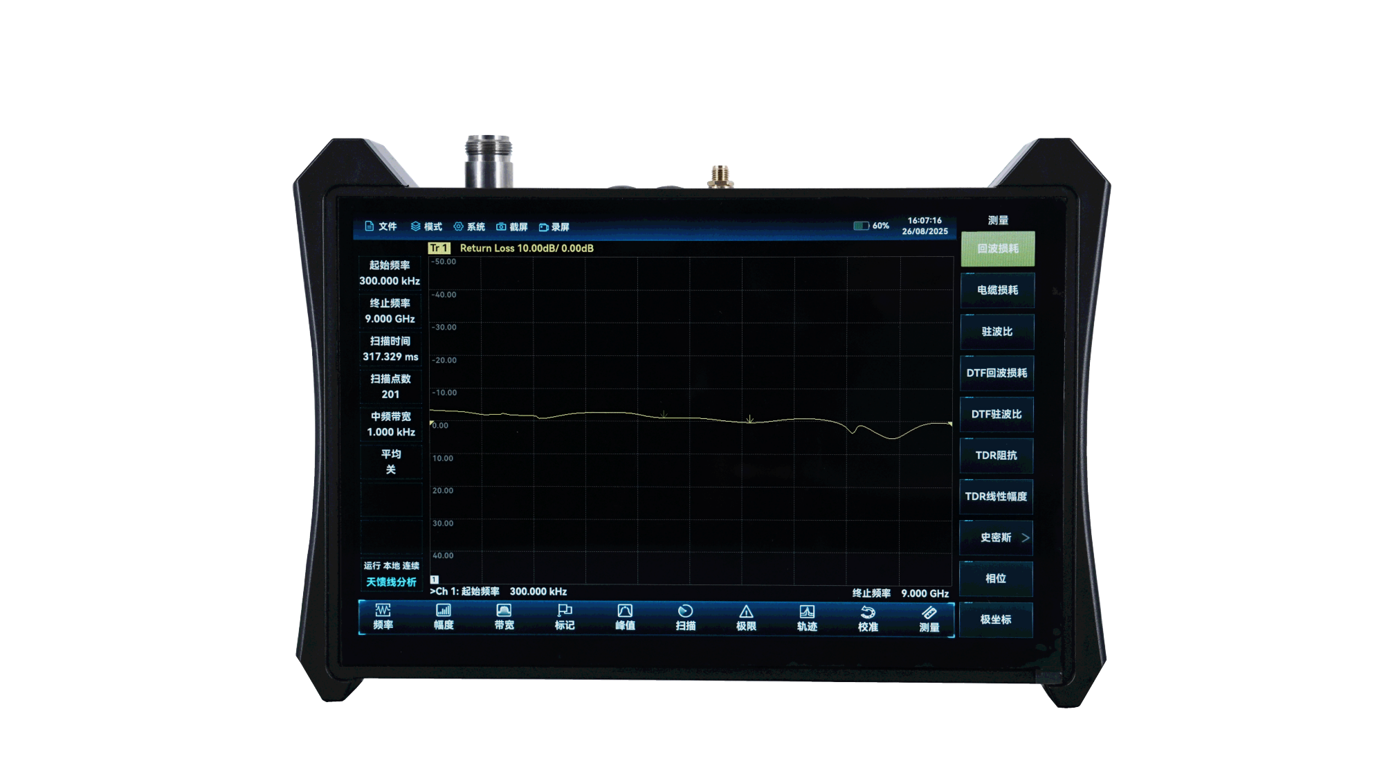 3680A/B天饋線測試儀采用了先進的射頻電路與數(shù)字電路混合集成設計技術、寬帶基波混頻技術、數(shù)字化中頻處理技術、智能電源管理技術等新技術;具有測量速度快、測量精度高、體積小、重量輕、可電池供電、支持觸摸屏操作、背光亮度可自動調(diào)節(jié)等優(yōu)點,可對駐波比、回波損耗、特性阻抗和相位進行測試,對故障點定位。