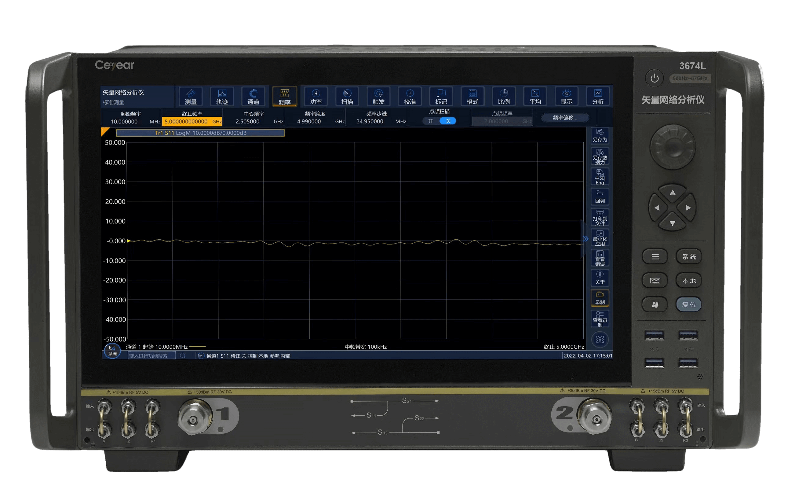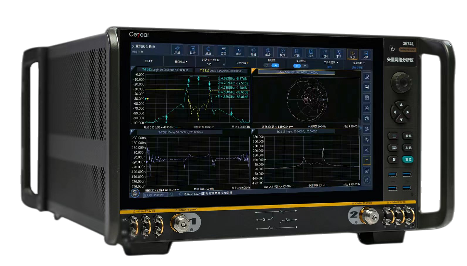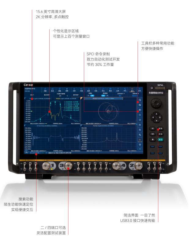 Ceyear 3674系列矢量網(wǎng)絡(luò)分析儀是技術(shù)創(chuàng)新的巔峰之作,可以輕松應(yīng)對半導(dǎo)體芯片測試、材料測試、天線測試、高速線纜測試、微波部組件測試等帶來的嚴(yán)峻挑戰(zhàn)。出色的射頻特性、靈活的硬件配置和豐富的軟件功能相輔相成,只需一次連接即可完成多種測量任務(wù)。創(chuàng)新的人機交互設(shè)計可幫助您快速便捷地完成所需的測量設(shè)置,超大觸摸屏為您帶來靈活、高效的操作體驗。