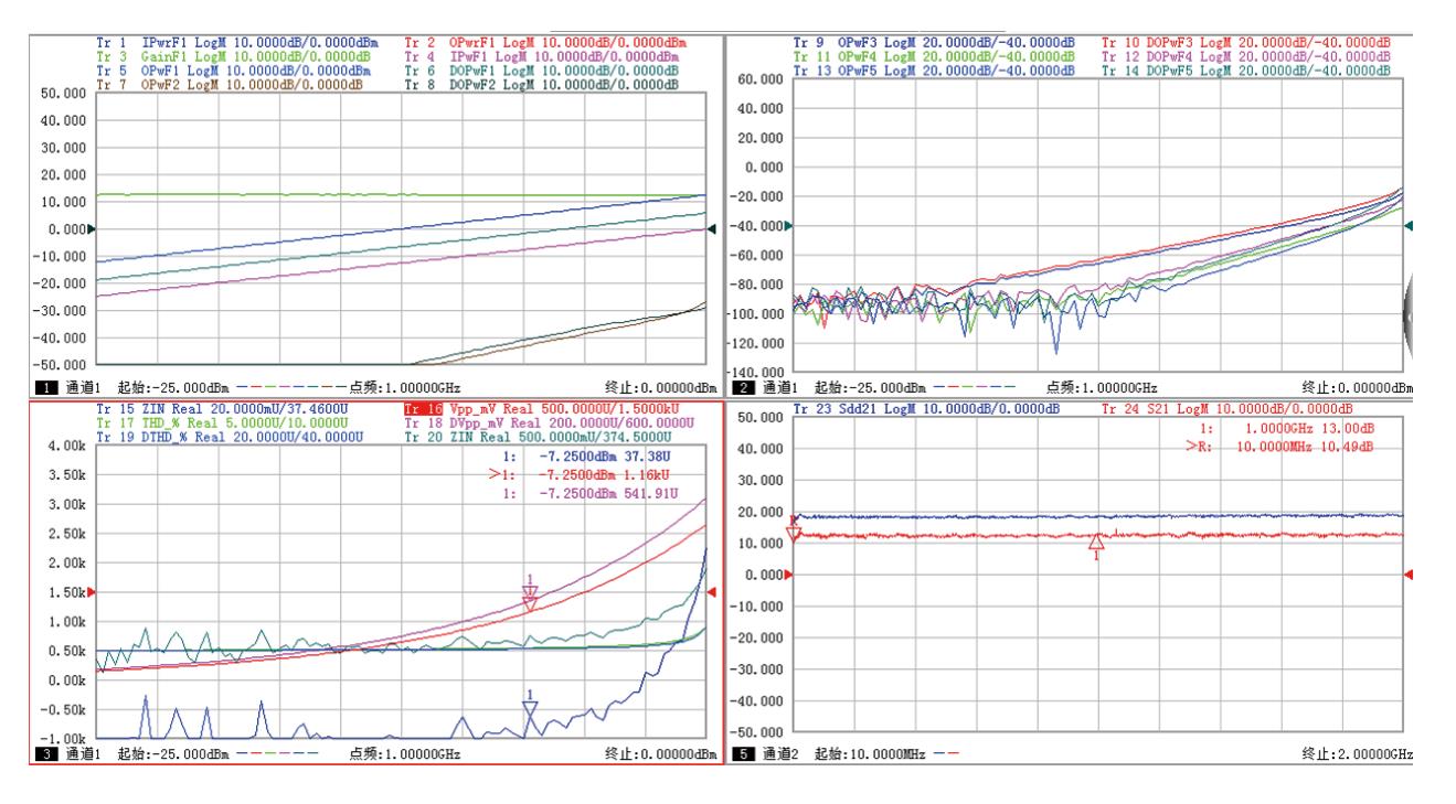 增益壓縮測量功能能夠通過一次連接、一次校準(zhǔn)完成有源器件在工作頻帶內(nèi)的線性增益、壓縮點增益、壓縮點輸入功率、壓縮點輸出功率、線性輸入匹配等壓縮參數(shù)測量。