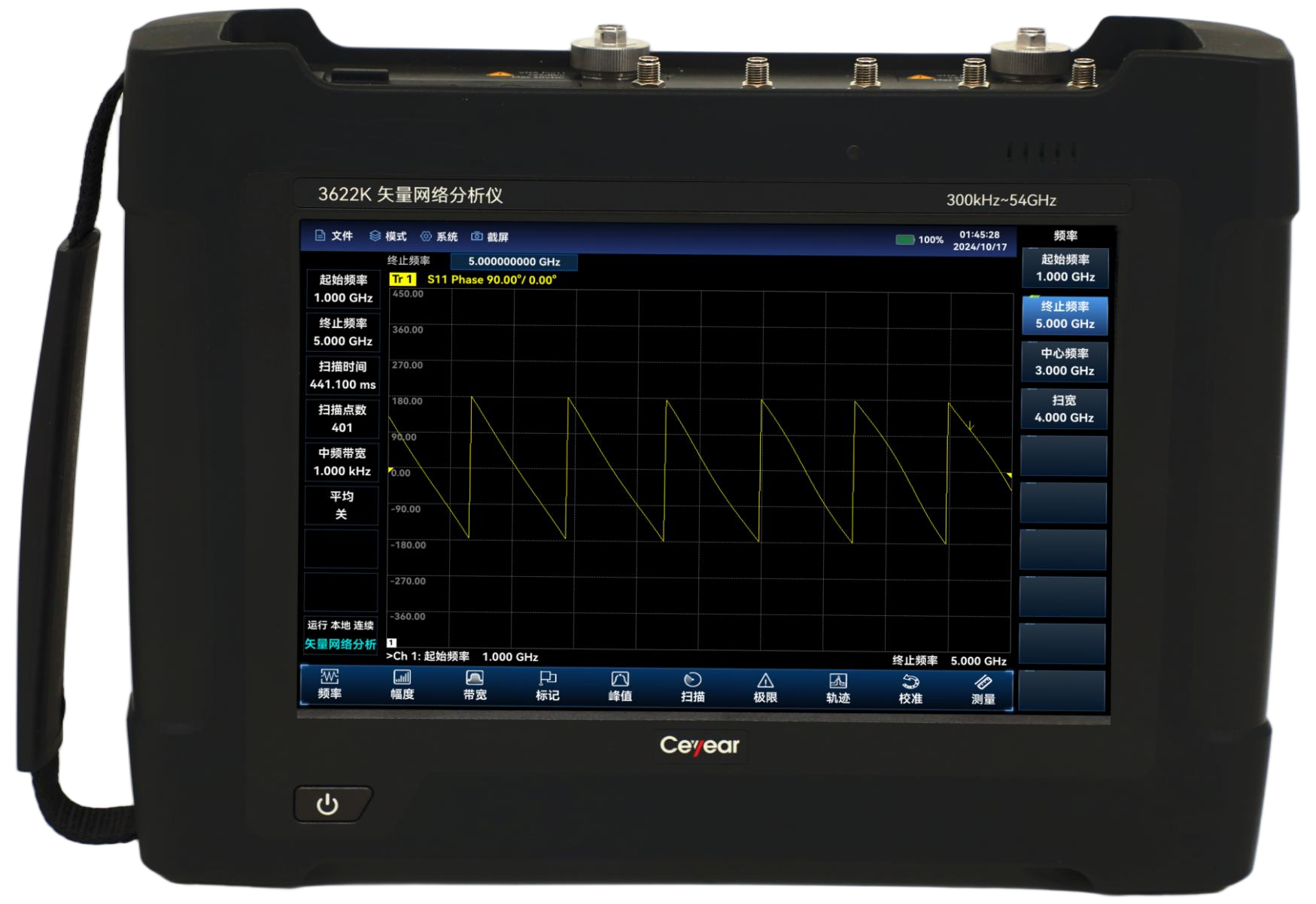 Ceyear 3622矢量網(wǎng)絡(luò)分析儀系列化產(chǎn)品頻率范圍覆蓋300kHz~54GHz,具有雙端口矢量網(wǎng)絡(luò)分析、天饋線分析、矢量電壓計、光時域反射計、USB連續(xù)波功率測量和峰值功率測量等多項功能,具有體積小、重量輕、環(huán)境適應(yīng)性強、供電靈活、操控方便等特點,產(chǎn)品可應(yīng)用于移動通信、衛(wèi)星通信、微波通信等設(shè)備的現(xiàn)場安裝調(diào)試與維護保障測試。