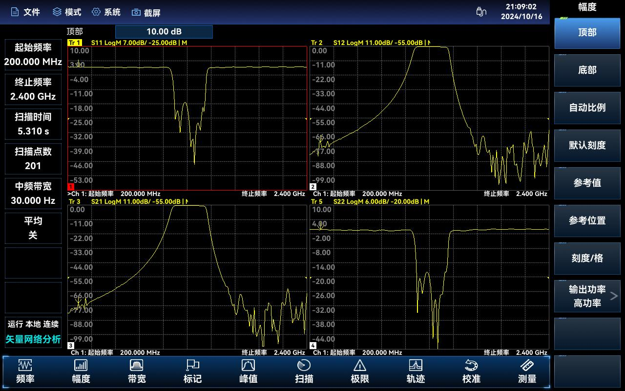 能夠同時測量四個S參數(shù)、幅度和相位