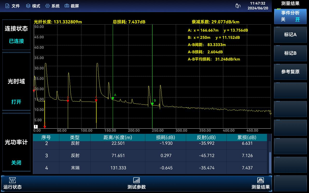 3622系列矢量網(wǎng)絡(luò)分析儀的光時域反射計功能通過外接USB光時域反射計,可以實現(xiàn)光纖故障點定位和分析,可以實現(xiàn)光功率測量。