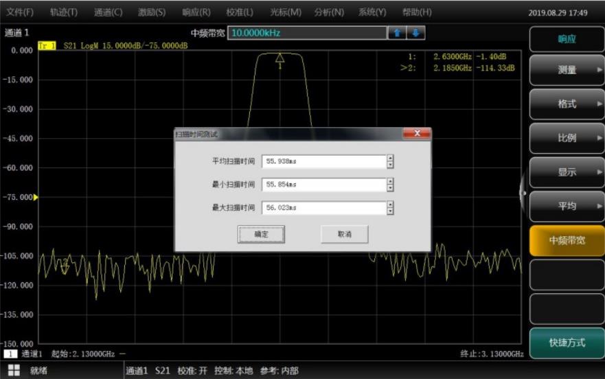3671系列矢量網(wǎng)絡(luò)分析儀在全頻段201點(diǎn)掃描、600kHz中頻帶寬情況下掃描速度可達(dá)43ms(典型值),并提供一鍵式掃描時(shí)間測試功能,方便評估。