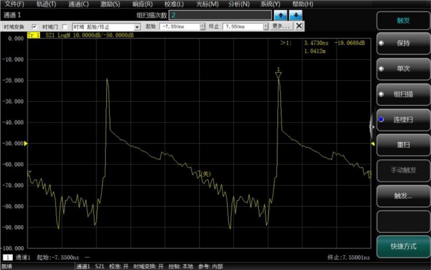 3671系列矢量網(wǎng)絡(luò)分析儀可通過配置時(shí)域測量選件實(shí)現(xiàn)測量結(jié)果頻域和時(shí)域之間的切換,用以確定器件、夾具或者電纜中的不連續(xù)點(diǎn)位置,實(shí)現(xiàn)故障點(diǎn)精確定位。
