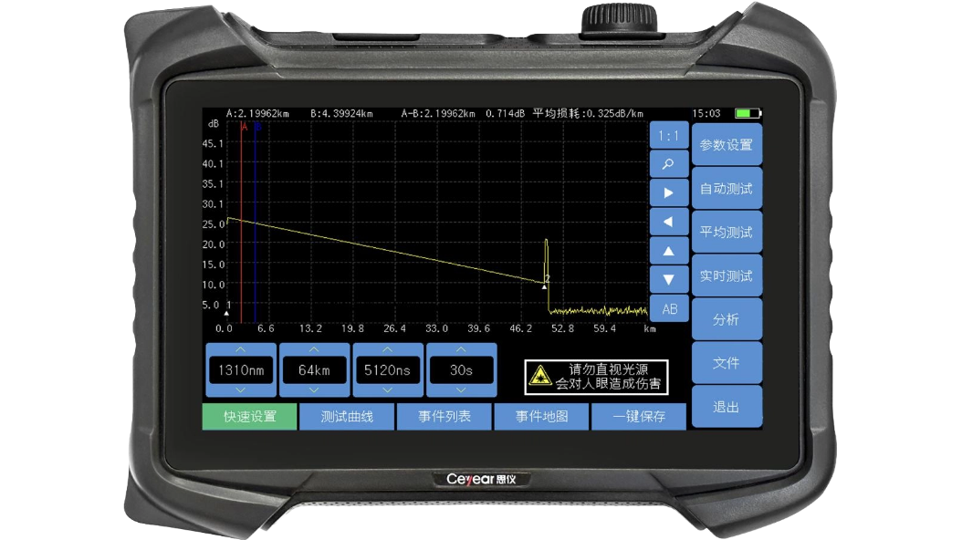 ● 專家OTDR:專業(yè)測量,曲線、列表、MAP同時顯示