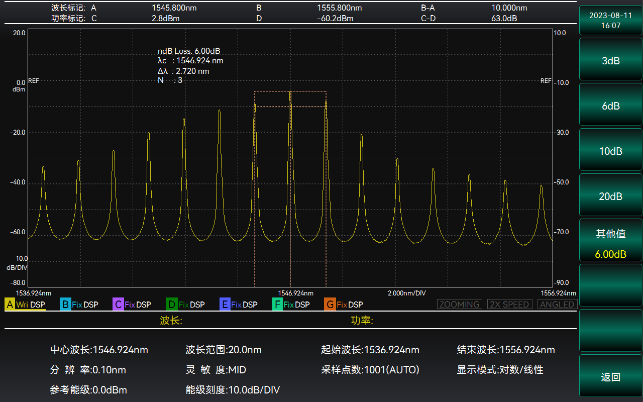 ndB損耗法測試中心波長和光譜帶寬