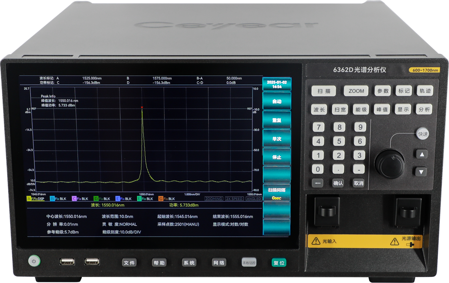 6362D光譜分析儀(光譜儀)支持不同光譜分辨率的設置,多種光譜分辨率設置靈活切換,最小光譜分辨率優(yōu)于20pm。