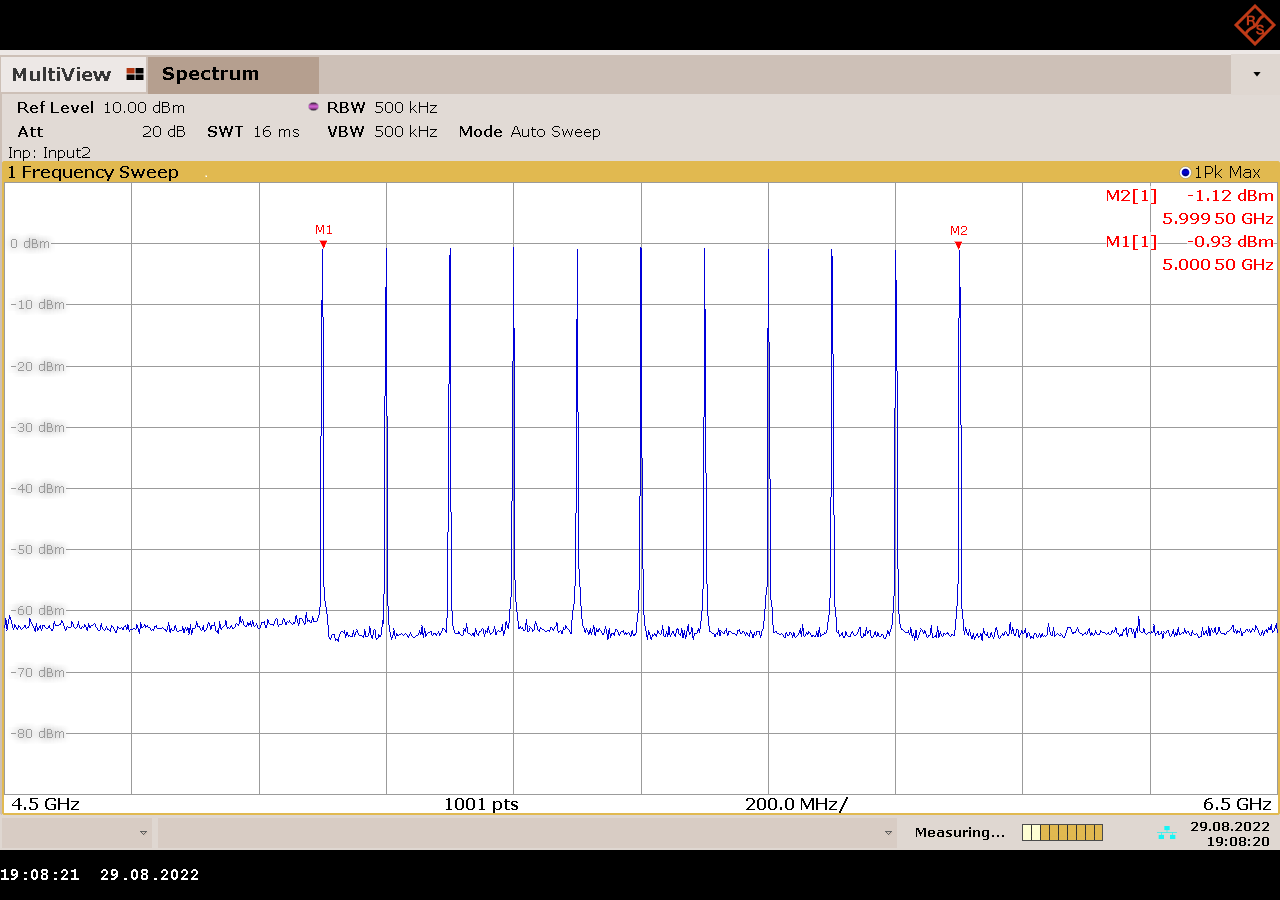 6935DE信號發(fā)生器提供頻率范圍250kHz~20GHz/50GHz(6935DE-H01選件,典型值1可擴(kuò)展至54GHz)的高純與超低相噪的本振信號,頻率轉(zhuǎn)換時間小于1ms,單邊帶相位噪聲優(yōu)于-114dBc/Hz@10kHz頻偏(載波10GHz,典型值1),可達(dá)到臺式儀器級別的頻譜純度。