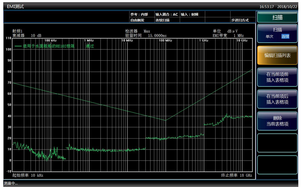可進(jìn)行標(biāo)準(zhǔn)限值線編輯、傳輸因子編輯、掃描列表編輯