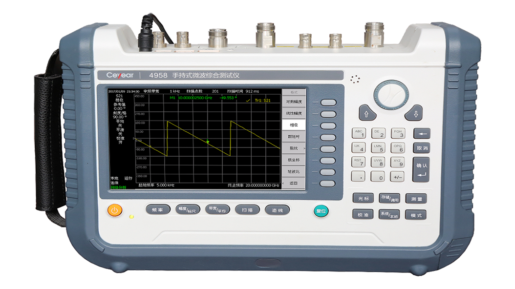 4958手持式微波綜合測試儀測量頻率范圍可達1MHz~20GHz,集電纜和天線駐波比測試、不連續(xù)點故障定位測試、插入損耗和增益測試、頻譜分析、功率測量等多種功能于一體,攜帶方便,機動靈活,可電池供電,非常適用于現(xiàn)場測試。該儀器可廣泛應(yīng)用于電子裝備的現(xiàn)場裝調(diào)、性能測試、日常維護和應(yīng)急維修測試等各個環(huán)節(jié),能夠有效提高用戶的現(xiàn)場維修保障能力。
