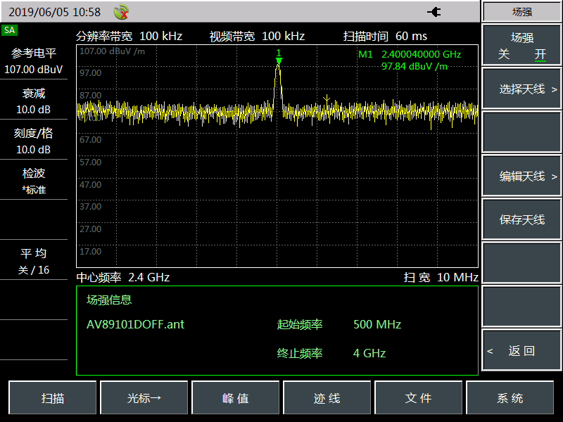 4957B/D/E/F射頻/微波綜合測(cè)試儀系列配合相應(yīng)的測(cè)試天線還可進(jìn)行場(chǎng)強(qiáng)測(cè)量,廣泛應(yīng)用于空間電磁環(huán)境監(jiān)測(cè)和無線電管理。支持用戶天線,允許用戶定義自己的天線。