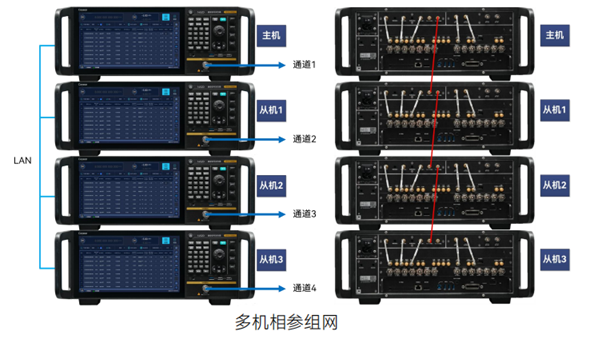 1452D/G捷變信號發(fā)生器支持步進0.1°高精度相位控制、相位連續(xù)/相位相參控制及多機相參組網(wǎng)控制,通過積木式搭建與重組可靈活實現(xiàn)高達128個通道的相參組網(wǎng),方便大規(guī)模陣列接收機場景級測試。通道間幅度、相位、時間差可高精度調(diào)節(jié),通道間一致性、穩(wěn)定性好,可精確模擬來波方向,支持AOA到達角測試。