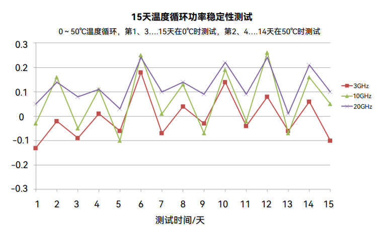 輸出信號的頻率、功率都具有非常高的穩(wěn)定性。時(shí)基老化率±5×10-8/年,10MHz高穩(wěn)時(shí)基一年變化不到0.5Hz。不僅具有優(yōu)異的輸出功率準(zhǔn)確度,功率穩(wěn)定度也非常出色,在0℃到50℃溫度循環(huán)的環(huán)境中連續(xù)開機(jī)15天,相同溫度下功率變化小于0.2dB,功率溫度變化率小于0.01dB/℃。