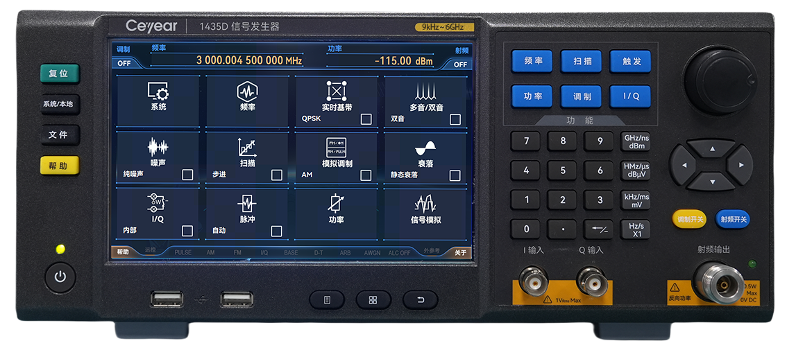 1435-V系列信號發(fā)生器是一款性能優(yōu)良的矢量信號發(fā)生器,頻率范圍覆蓋9kHz~6GHz,200MHz內(nèi)部調(diào)制帶寬和齊全的數(shù)字調(diào)制樣式,可滿足各種寬帶數(shù)字調(diào)制信號的模擬需求。支持5種下載數(shù)據(jù)格式的任意波調(diào)制,可以根據(jù)用戶需要編輯、下載配置所需的波形,完成各種信號模擬,滿足各種復(fù)雜信號的測試需求;其基帶信號發(fā)生器設(shè)置簡單、性能優(yōu)異,支持PSK、QAM、FSK、MSK等超過20種格式的通用數(shù)字調(diào)制信號的實(shí)時發(fā)生;具有優(yōu)良的頻譜純度,單邊帶相位噪聲1GHz載波@10kHz頻偏-136dBc/Hz ,6GHz載波@10kHz頻偏-120dBc/Hz;具有高功率輸出和大動態(tài)范圍,最大輸出功率可達(dá)22dBm@3GHz,輸出功率動態(tài)范圍大于150dB;具有7寸高靈敏度觸摸LED屏、同時支持觸摸屏、面板按鍵、旋轉(zhuǎn)按鈕、外接鼠標(biāo)鍵盤等多種操作方式,操作體驗(yàn)全面升級;3U便攜式機(jī)箱結(jié)構(gòu),體積小重量輕,便于攜帶。1435-V在緊湊的空間內(nèi)實(shí)現(xiàn)優(yōu)異的性能,既可以滿足設(shè)備研發(fā)階段對高性能測試需求,也可以滿足生產(chǎn)階段對高效率測試需求。