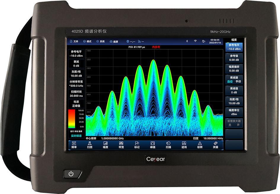Ceyear 4025頻譜分析儀系列化產(chǎn)品頻率測(cè)量范圍覆蓋9kHz~54GHz,主要用于外場(chǎng)無線通信設(shè)備的安裝調(diào)試、維護(hù)保障及干擾排查等場(chǎng)合,具有體積小、重量輕、環(huán)境適應(yīng)性強(qiáng)、供電靈活、操控方便等特點(diǎn)。