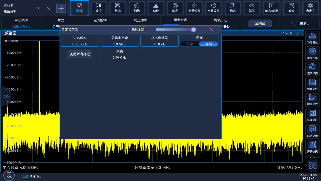Ceyear 4071最大200MHz的瞬時分析帶寬,可提供10MHz(標(biāo)配)/40MHz/200Hz共3種分析帶寬選擇,滿足不同測試場景的應(yīng)用需求。