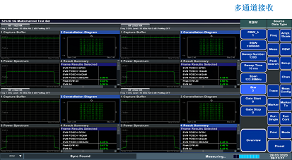 5252D能夠支持多通道并行接收測試,并且能夠?qū)π盘栠M(jìn)行多域同時(shí)分析即時(shí)域、頻域以及調(diào)制域分析,同時(shí)能夠?qū)π盘柖鄠€(gè)參數(shù)進(jìn)行測量(EVM、最大功率、OBW、ACLR以及SEM)