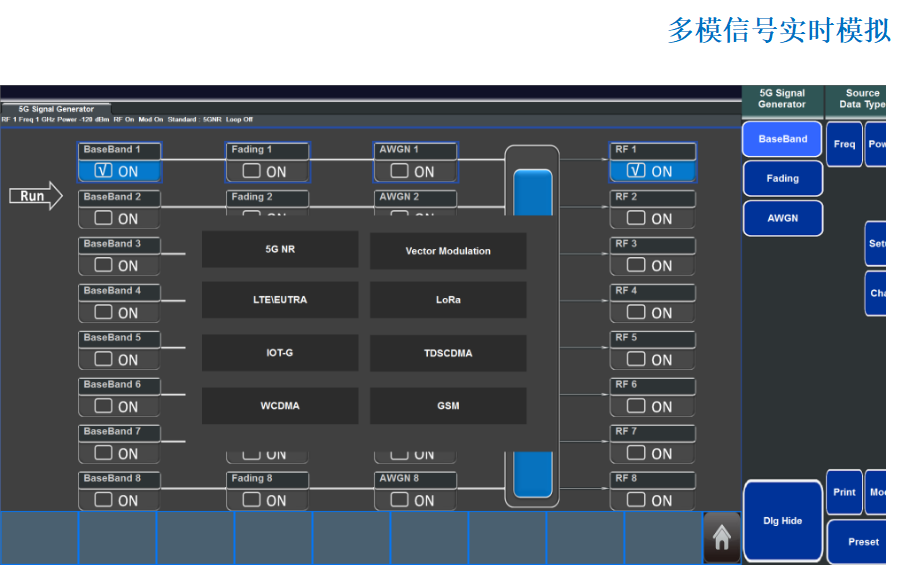 5252D也能同時(shí)支持多通道并行信號發(fā)射測試,并且能夠支持多模信號實(shí)時(shí)模擬。