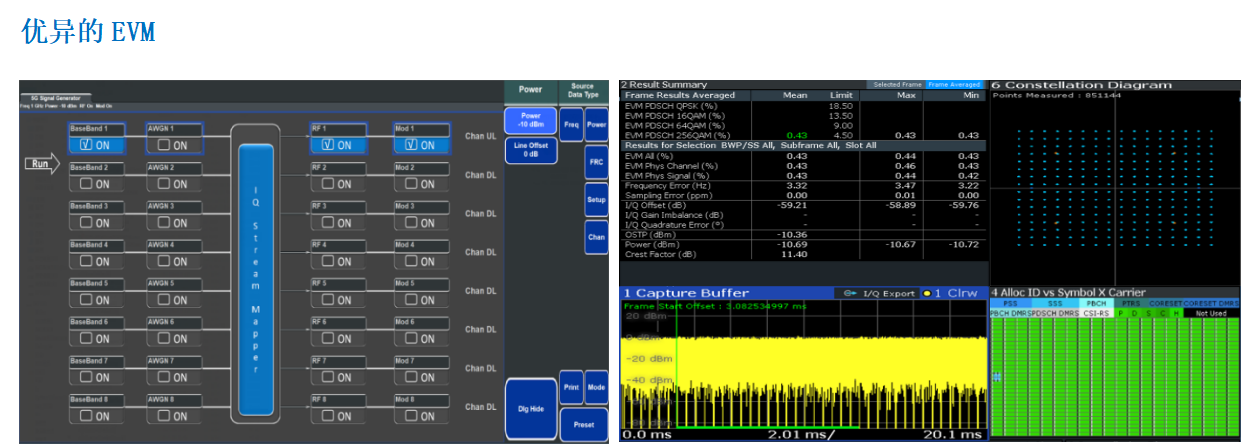5252D 具有優(yōu)異的調(diào)試信號質(zhì)量,EVM優(yōu)于1%(FR1頻段,100MHz帶寬5G NR信號)。